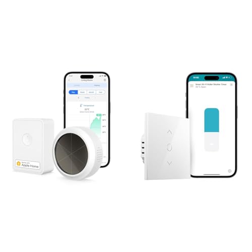 Meross Thermomètre Hygromètre Intelligent à Énergie Solaire (AVEC HUB), Capteur de Température & Interrupteur Volet Roulant Connecté (FIL NEUTRE REQUIS), Interrupteur de Rideau