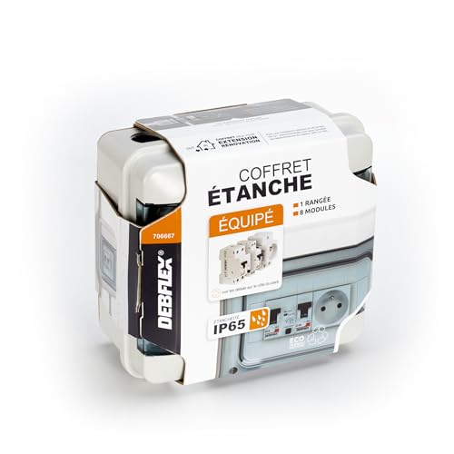 DEBFLEX - Coffret Electrique Etanche Prééquipé - Tableau Electrique 8 Modules - 1 Interrupteur Différentiel AC + 1 Disjoncteur + 1 Prise - Idéal Extérieur/Jardin - Pose en Saillie - 200 x 213 x 107mm