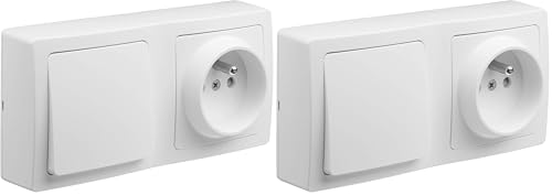 DEBFLEX - Blok - Interrupteur Va-et-vient + Prise de Courant 2P+T - Duo Complet pour Rénovation - Facile à Installer - Pose en Saillie à l'Horizontale Ou Verticale - Blanc - 140 x 70 x 39,6 mm