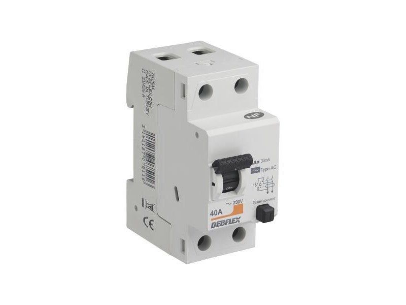 DEBFLEX - Interrupteur Différentiel 40A 30mA 2 Pôles Type AC - Module de Protection Electrique - Certifié NF - Installation dans Tableau Electrique - Gris