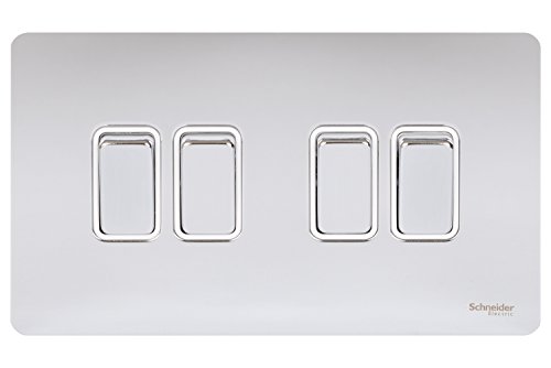 Schneider Electric Assiette plate 16 AX 2 voies Interrupteur Design Innovant 4 boutons Chrome poli avec insert blanc