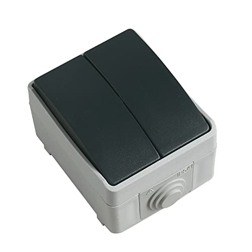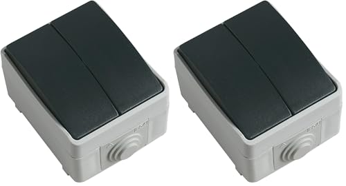 Amig - Interrupteur Double Étanche IP54 | 10A, 230V, 2300W | Polycarbonate Résistant pour Extérieur et Intérieur | Idéal Terrasses et Jardins, Gris, Polycarbonate (Lot de 2)