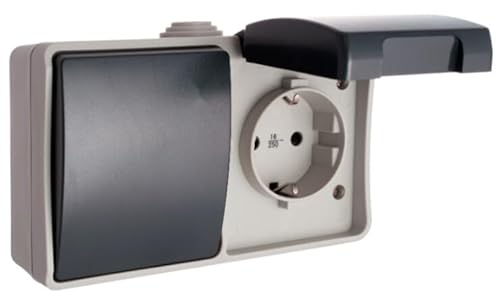 Amig - Interrupteur Étanche IP54 + Base Schuko | 230V 10A/16A | Extérieur Intérieur | Polycarbonate Gris, Multicolore, Polycarbonate