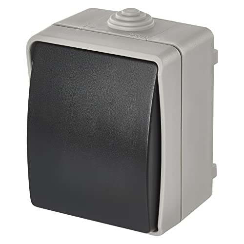 EMOS Interrupteur à Bascule étanche pour Cage d'escalier - Couleur : Gris/Noir - 250 V ~/10 AX - en Plastique - Montage Mural - Classe de Protection IP54 pour l'extérieur