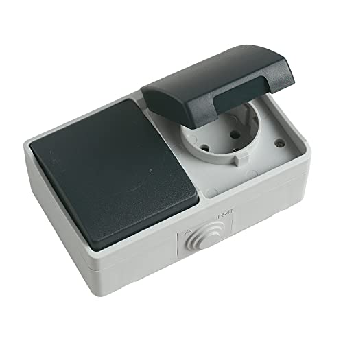Base fixe avec commutateur et interrupteur étanche IP44 pour une utilisation en extérieur, idéal pour des installations électriques sûres et fiables.