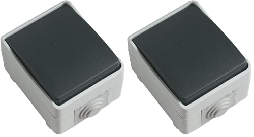 Amig - Interrupteur Double Étanche IP54 | 10A, 230V, 2300W | Polycarbonate Résistant pour Extérieur et Intérieur | Idéal Terrasses et Jardins, Gris, Polycarbonate (Lot de 2)