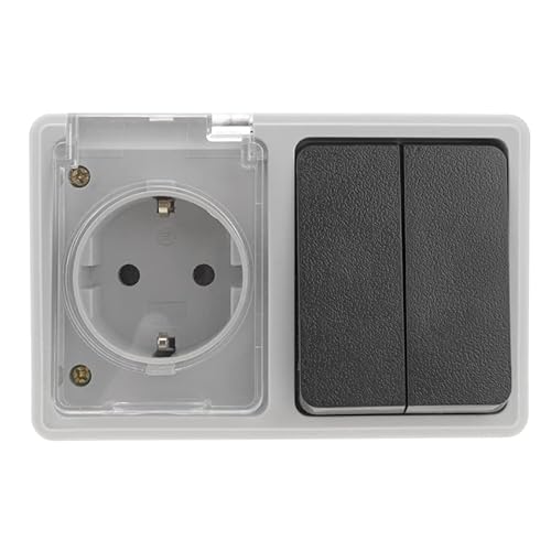 Base Schuko étanche avec double interrupteur, idéale pour les installations électriques en extérieur et protection contre l'humidité et la poussière.