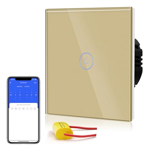 BSEED Interrupteur à Touche Intelligente WIFI 2.4G (Fil Neutre Non Requis) Interrupteur Mural avec Panneau en Verre, 1 Gang 1 Voie Or 86mm