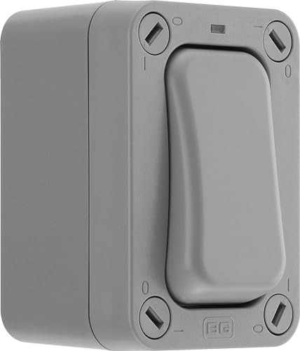 BG Electrical WP12S Interrupteur mural simple d'extérieur avec indicateur LED Résistant aux intempéries Gris Nexus Storm 2 voies 20 A IP66