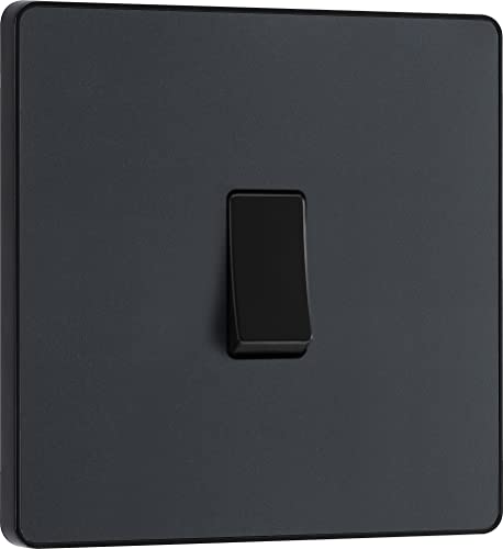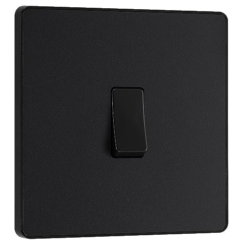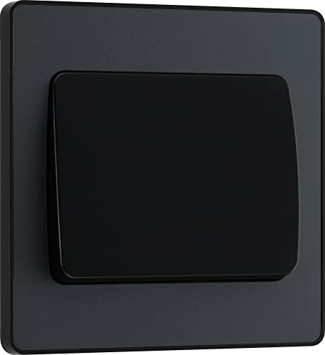 BG Electrical PCDMB12B Interrupteur mural simple, 2 voies, plaque avant sans vis, bords arrondis, noir mat, 20 A, 16 AX, PCDMB12B