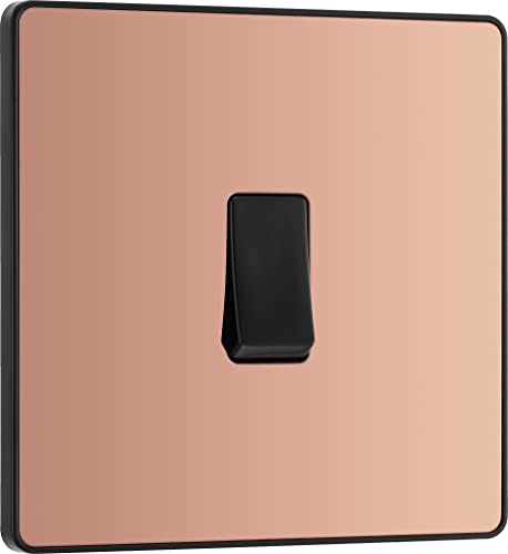 BG Electrical PCDCP12B Interrupteur mural simple, 2 voies, plaque avant sans vis, bords arrondis, cuivre poli, 20 A, 16 AX, PCDCP12B