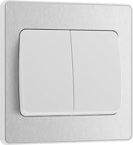 BG Electrical PCDBS42WW Double interrupteur mural à bascule large 2 voies Plaque avant sans vis Bords arrondis Evolve Acier brossé 20 A 16 AX