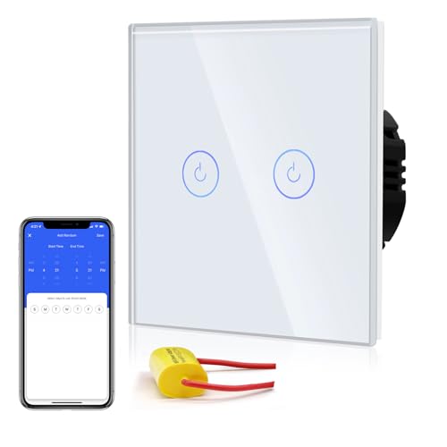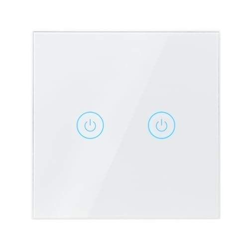 BSEED Interrupteur à Touche Intelligente WIFI 2.4G (Fil Neutre Non Requis) Interrupteur Mural avec Panneau en Verre, 2 Gang 1 Voie Blanc 86mm