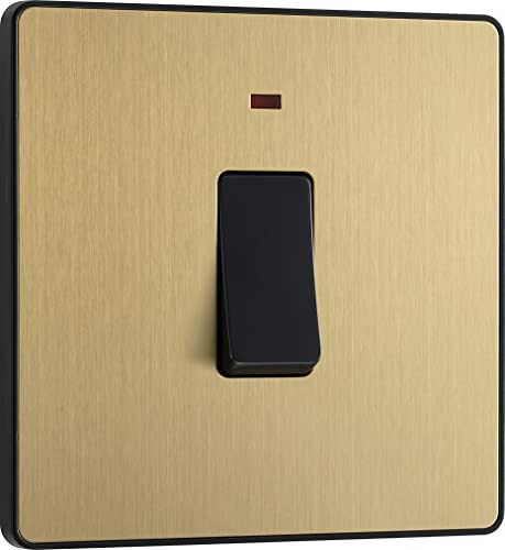 BG Electrical PCDSB31B Interrupteur mural simple avec indicateur d'alimentation LED, double pôle, plaque avant sans vis, bords arrondis, évolution, laiton satiné, 20 A, PCDSB31B