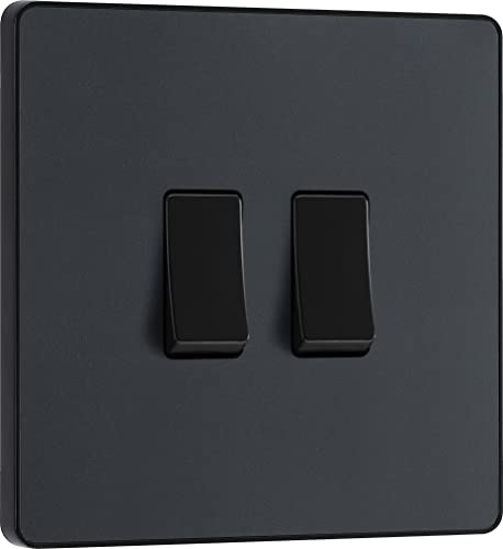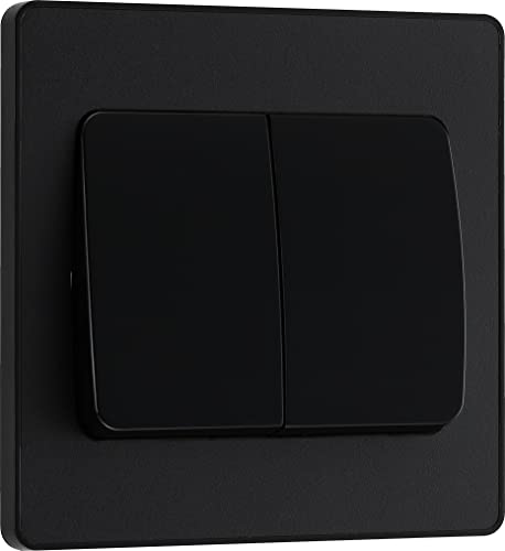 BG Electrical PCDMB42B Double interrupteur mural 2 voies Plaque avant sans vis Bords arrondis Noir mat 20 A 16 AX