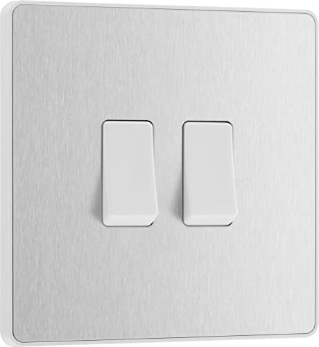 BG Electrical FBS42 Interrupteur mural double 2 voies Plaque avant sans vis Profil fin Plaque plate de qualité supérieure Acier brossé 20 A 16 AX