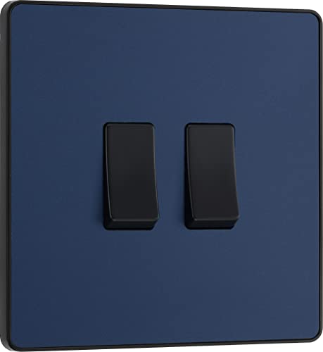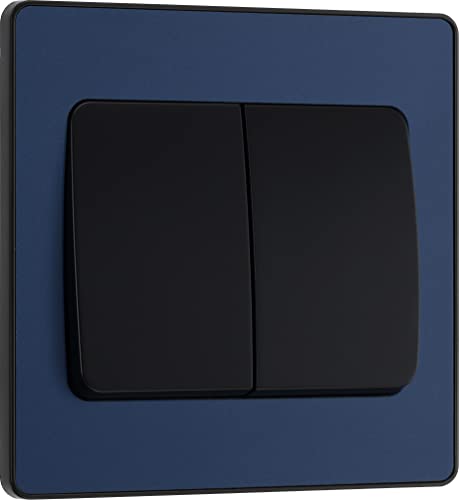 BG Electrical PCDDB42B Double interrupteur mural 2 voies Plaque avant sans vis Bords arrondis Bleu mat 20 A 16 AX