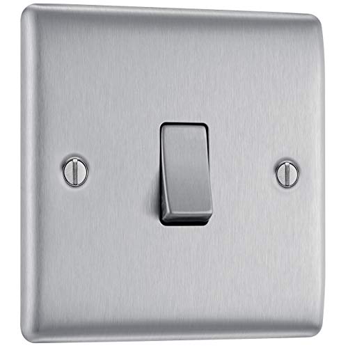 BG Electrical NBS12 Interrupteur mural simple, 2 voies, profil surélevé et fin, bords arrondis, Nexus métal, acier brossé, 20 A, 16 AX, NBS12