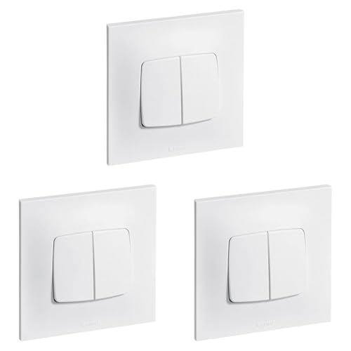 LEGRAND - Interrupteur Poussoir Double Neptune 6A - Commande d'Éclairage Monobloc - Prêt à Installer - Blanc (Lot de 3)