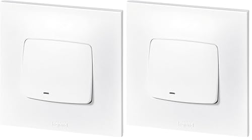 LEGRAND - Interrupteur ou Va-et-vient Neptune 10A - Commande d'Éclairage Monobloc avec Voyant (Fourni) - Prêt à Installer - Blanc (Lot de 2)
