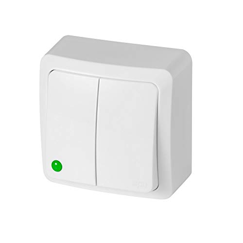 ELEKTROPLAST 1 interrupteur IP44 - Prise murale pour pièces humides Schuko Hermes ANTRA (double interrupteur 0332-07) x, blanc, L x P x H : 62 mm x 42 mm x 62 mm.