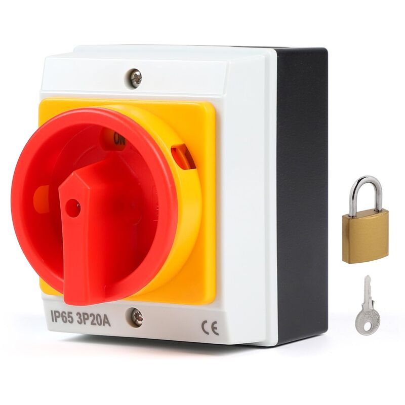 20A Interrupteur Principal 3 Pôles, Interrupteur Rotatif avec Boîtier pour Connecter Interrupteurs et Séparer Petits Circuits, IP65