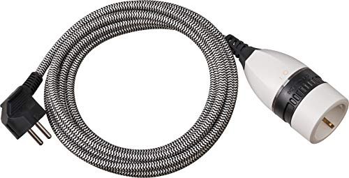 Brennenstuhl Rallonge de 3 m pour l'intérieur (câble Textile de 3 m, pour Une Utilisation en intérieur, rallonge avec Interrupteur Rotatif Marche/arrêt éclairé) - Noir/Blanc