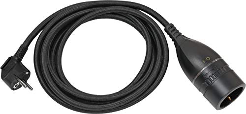 Brennenstuhl Rallonge 3 m pour l'intérieur (câble Textile de 3 m, pour Une Utilisation en intérieur, rallonge avec Interrupteur Rotatif Marche/arrêt éclairé) Noir.