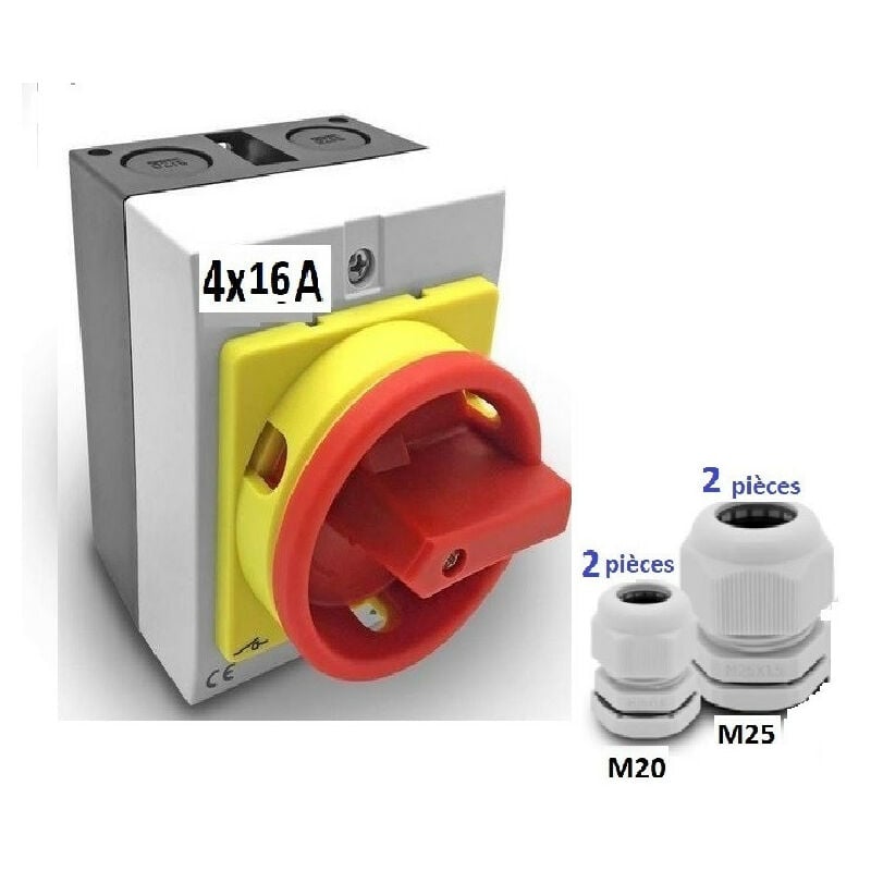 Interrupteur sectionneur rotatif cadenassable 4P 16 A en boitier livré avec 4 PE