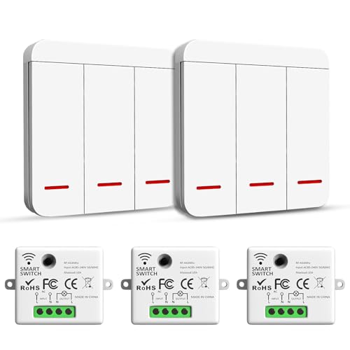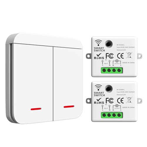 ARCELI Interrupteur Sans Fil Kit 433Mhz 2200W/10A - 1 RF et 2 Récepteurs, Éclairage Intelligent Intérieur 30-50M