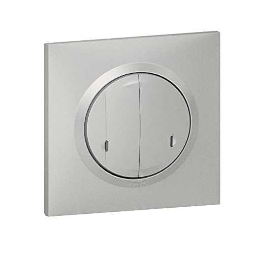 Legrand Interrupteur Double sans Fil On/Off pour Éclairage et Prises Connectés Dooxie with Netatmo Complet (Fixation Adhésive, Support, Enjoliveur, Plaque) - Finition Aluminium - 199259