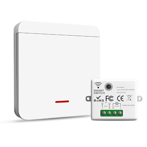 Pixelure Interrupteur d'éclairage sans fil, interrupteur de sécurité et contrôleur récepteur 10 A pour lampes jusqu'à 1500 W
