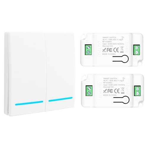 ARCELI Interrupteur Sans Fil RF 433MHz 2200W/10A Kit 2 Switch 1 Récepteur Mural
