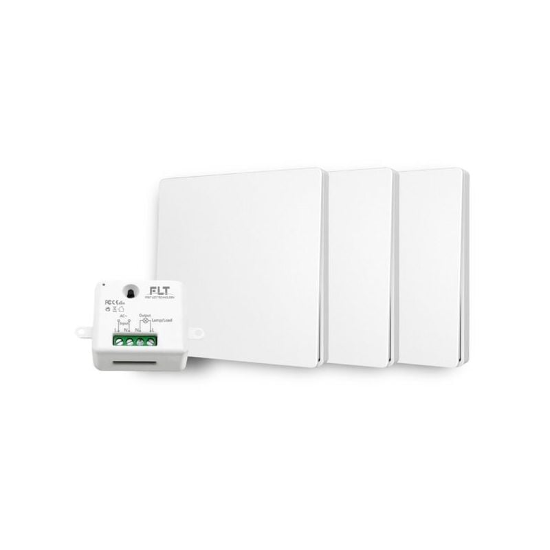 Fast Led Technology - Kit interrupteur va-et-vient sans fil et sans pile prêt à poser - 3 boutons poussoirs + 1 relais récepteur radio