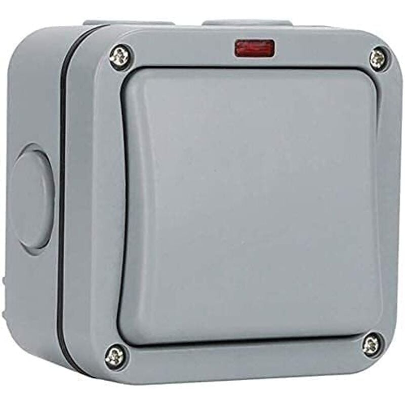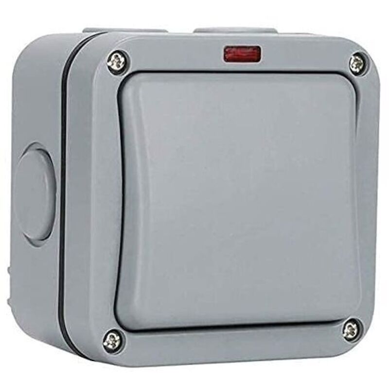Interrupteur extérieur étanche - Interrupteur de commande - Voyant lumineux - 20A - IP65 adapté pour jardin, atelier, balcon, gris
