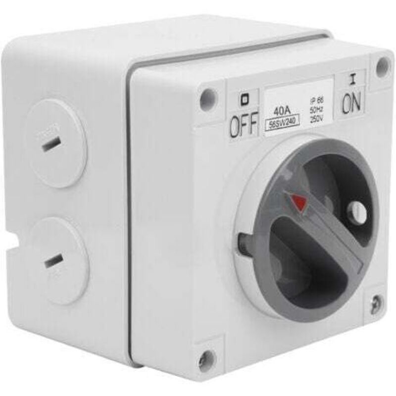 Interrupteur marche/arrêt rotatif étanche IP66 2P 40A avec voyant lumineux, 250 V, adapté à une utilisation extérieure et industrielle.