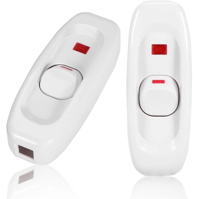 Interrupteur à Touche Basculante, Intermédiaire, Lampe de Chevet, 250V 10A In-Line Lamp ON/OFF Câble Commutateur avec LED Voyant lumineux, Blanc, 2PCS