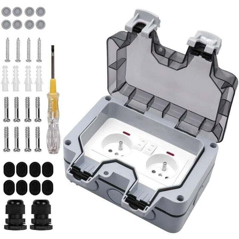 Prise extérieure étanche avec interrupteur et voyant lumineux, double prise encastrée standard française, CA 250 V/16 A pour cuisine, salle de bain,