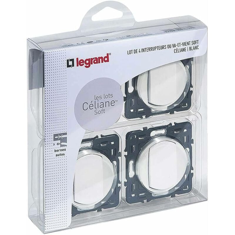 Legrand – Lot de 4 interrupteurs va-et-vient Céliane Soft – Blanc – Interrupteur Composable pour installation électrique – Fixation facile