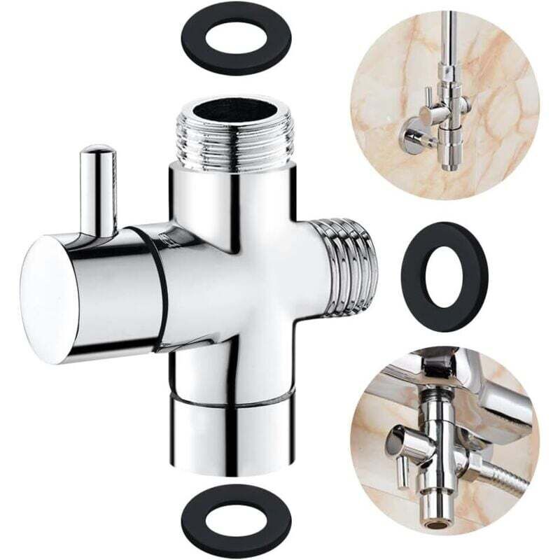 Enowelir Vanne à 3 voies Raccord en T Robinet de toilette à 3 voies G 1/2 Douchette Inverseur de douche à 3 voies Vanne de douche en laiton pour