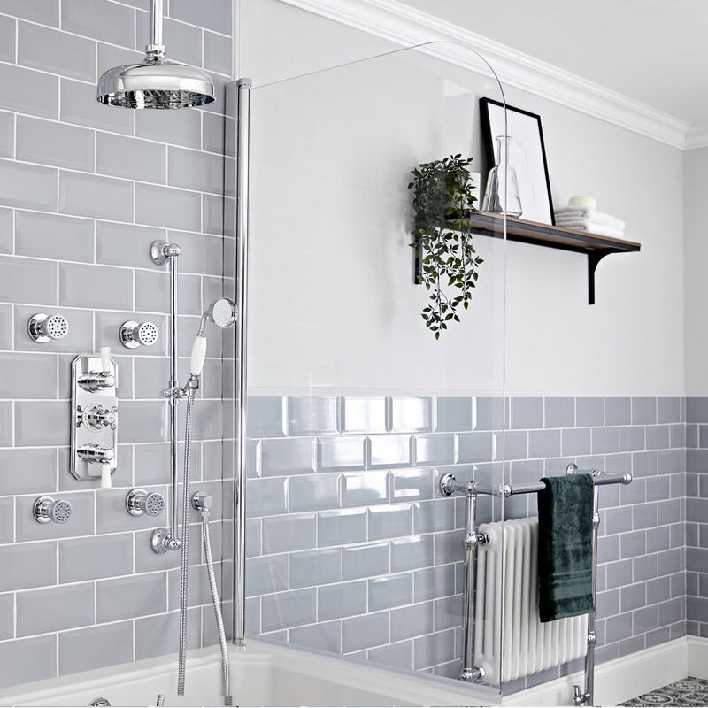 Hudson Reed - Elizabeth - Kit de douche rétro - Mitigeur thermostatique à triple fonctions avec inverseur&44 Pommeau de douche pluie rond de 20 cm&44