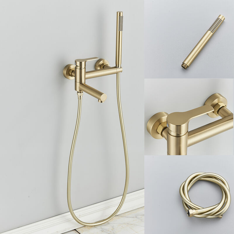 Robinet mural de baignoire à cascade avec douchette Or brossé 2 poignées Robinet mural de baignoire avec inverseur de douche Laiton massif Bec