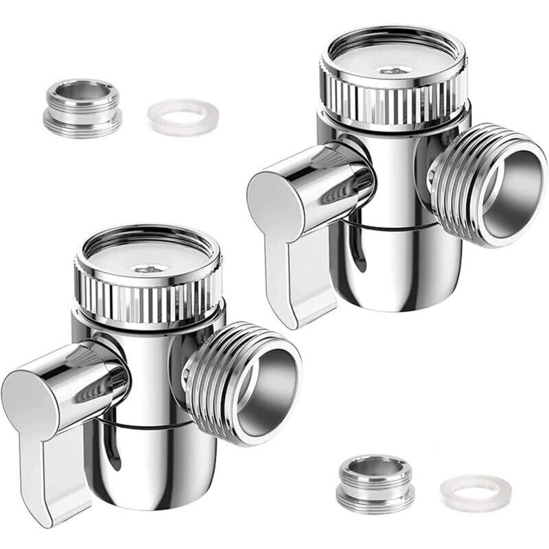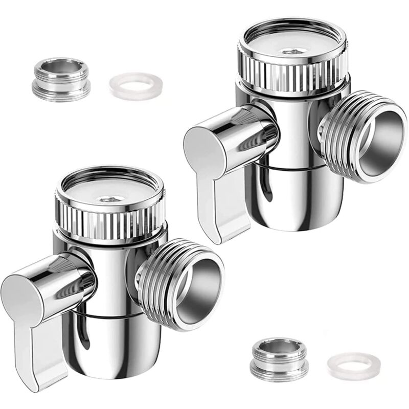 2 Pièces Inverseur Douche Robinet WC 3 Voies Vanne Aiguillage Douchette M22 x M24 Adaptateur Vanne Aiguillage Chromé pour Cuisine ou Toilette Salle
