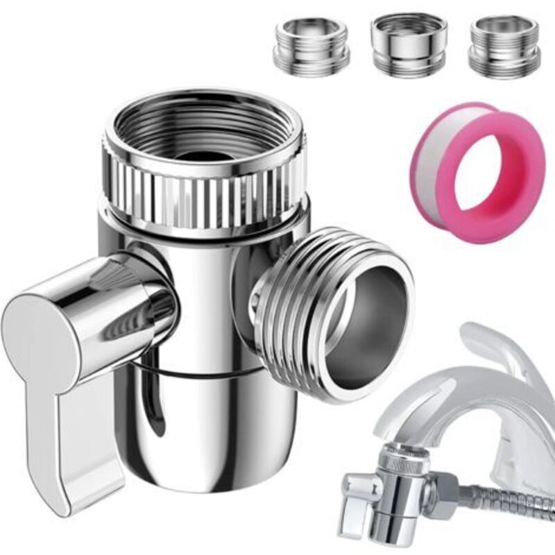 Valve Inverseur de Douche 3 Voies Vanne Aiguillage de Douchette Robinet d'arrêt pour Cuisine ou Salle de Bain avec Robinet Adaptateur M22-M24,
