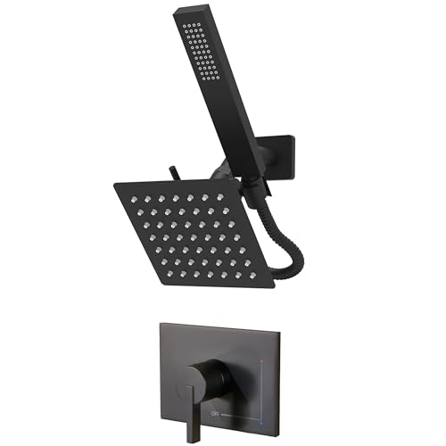 SOOOHOT Ensemble pommeau de douche et poignée noirs, ensemble de robinets de douche avec douchette à main, ensemble de double pommeau de douche entièrement en métal de 15,2 cm et inverseur à 3 voies,