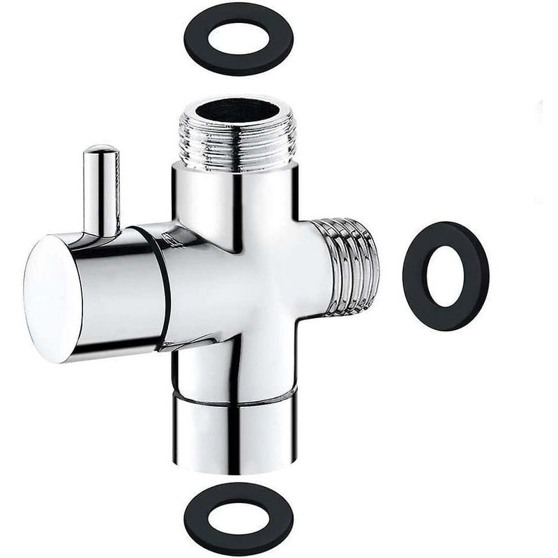 Vanne à 3 voies Raccord en T Robinet de toilette à 3 voies G 1/2 Douchette Inverseur de douche à 3 voies Vanne de douche en laiton pour salle de