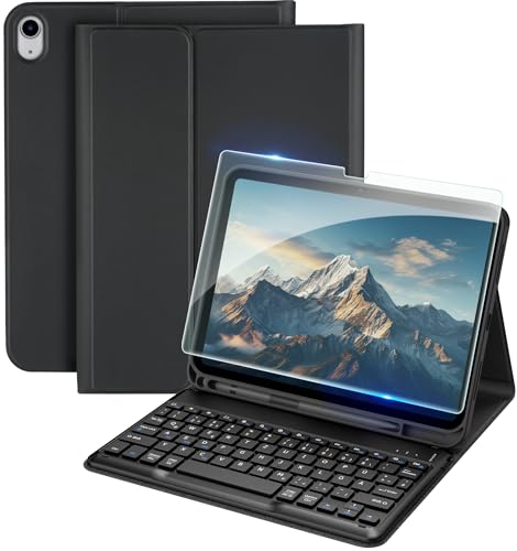 EasyAcc Étui pour iPad 11 (A16) / 10 génération avec clavier 11/10,9" 2025/2022 (A2696/ A2757/ A2777/ A3162/ A3354/ A3355/ A3356), magnétique amovible avec porte-stylo, clavier noir