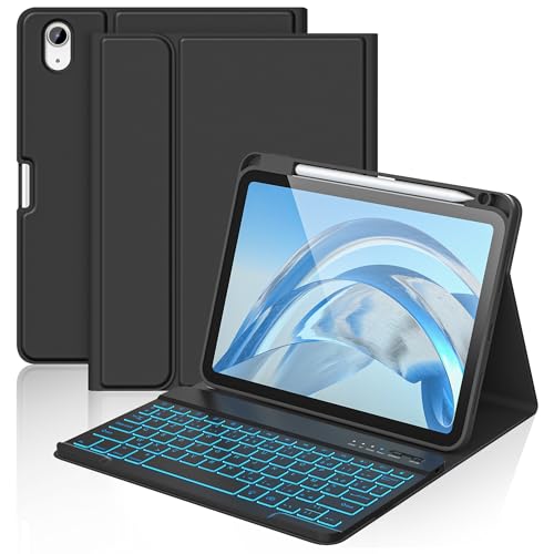 aMZCaSE pour iPad A16 10/11e génération avec Clavier 11/10,9 Pouces(2025/2022),Clavier sans Fil Amovible avec rétroéclairage 7 Couleurs et Support pour Stylet (Obscurité)