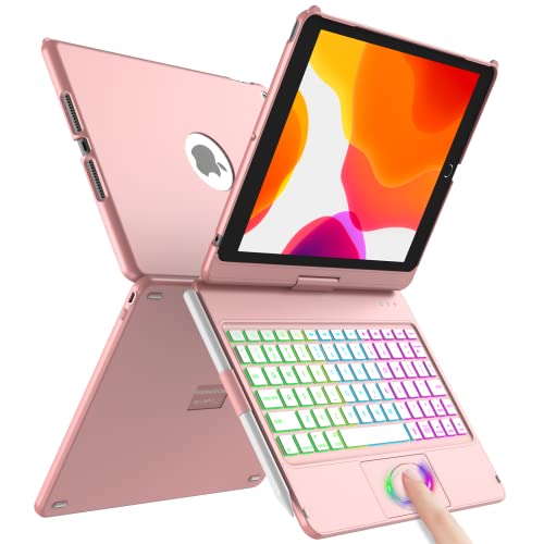 SZO Clavier Coque pour iPad 9/8/7ème Génération 10.2" 2021/2020/2019, 360° Touchpad Flip Coque Dure Slim Cover, 7 Rétroéclairages, Clavier Bluetooth avec Mise Veille/Réveil Automatique, Rose Gold