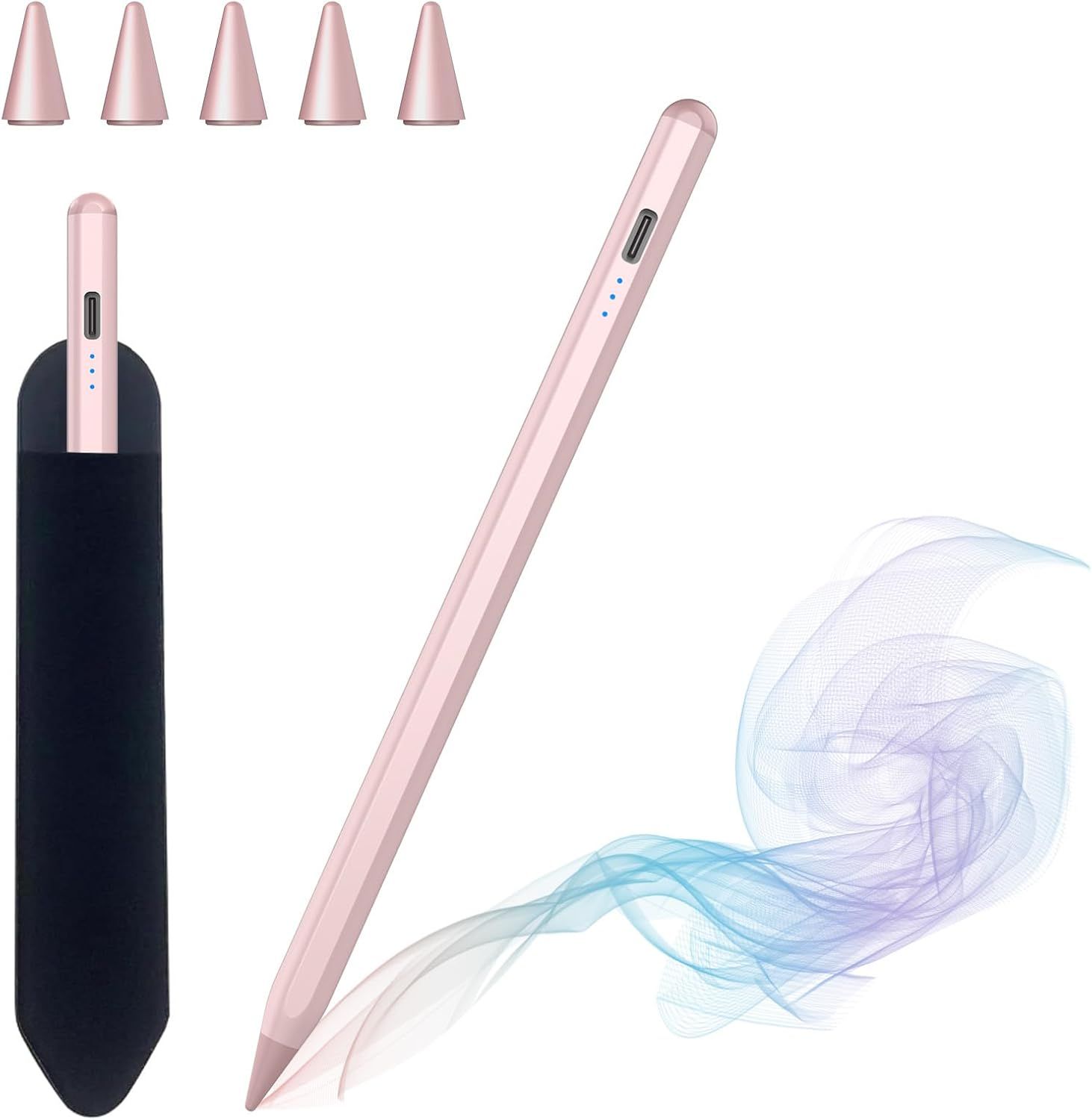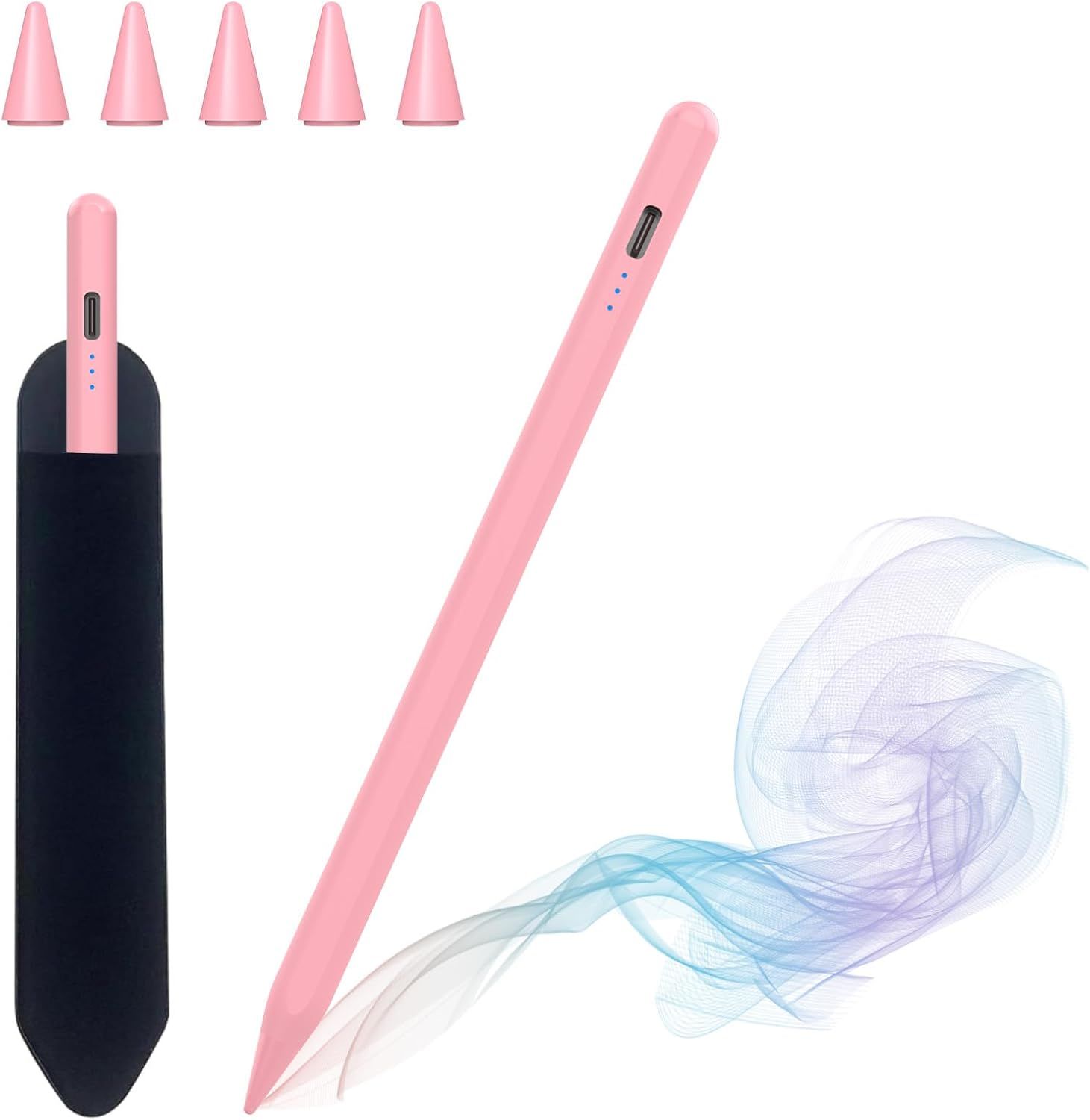 Stylet Ipad, Pencil Ipad, Stylo Pour Ipad 2018-2024, Stylet Tablette Ipad Avec Chargement Rapide, Aspiration Magnétique, Compatible Ipad Pro 11/12.9,Ipad 10/9/8/7/6,Ipad Air 5/4/3,Ipad Mini 6/5(Rose)